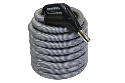 Its comfort grip handle is similar to a gas pump handle with a 360-degree swivel for maximum ease of use. The Vacuflo hose handle has a 3-position switch to control on/off to the central vacuum unit and also turn off the powerhead to use it with straight suction on smooth flooring. An air relief valve can be opened to reduce suction when you need it. For example, cleaning blinds can be difficult with too much suction, but it’s done easily with a dusting brush and the air relief valve fully open. This hose can be used with any of the direct connect powerheads such as the Vacuflo Edge Electric Powerhead.