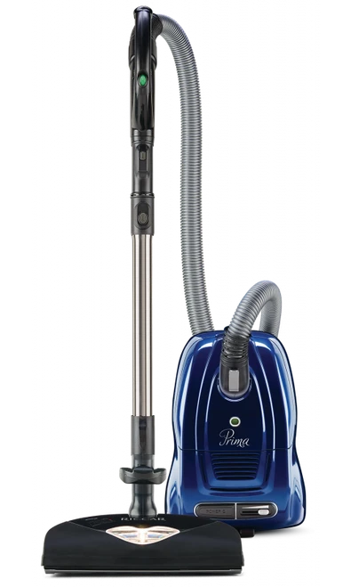 Great for cleaning full rooms of carpet, the nozzle is equipped with a metal brushroll and two rows of replaceable brushstrips, plus a lifetime belt. For bare floor cleaning, Prima also comes with the Soft Sweep microfiber bare floor tool to clean and polish bare floors in one step. Prima is not just power but also maneuverable and versatile, compact and lightweight. With sealed HEPA media filtration, self-sealing HEPA media bags and a long 28-foot cord. Prima reaches where you need to clean and removes and captures dust and dirt beautifully. Above the floor cleaning is a cinch with a telescopic wand, long hose, and tools like the deluxe dusting brush with natural bristles. A tool adapter connects to any standard size vacuum tools, and a tool caddy keeps tools at-the-ready, plus adjustable suction control lets you dial down the power for more gentle cleaning.
