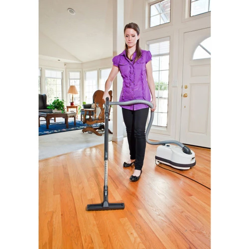 The D4’s remarkable dual-control handle has two soft-touch buttons that provide convenient suction adjustment, from maximum power for normal cleaning to minimal suction for delicate tasks, such as curtains. The hose handle also offers an on/off switch for the power head’s brush roller when straight suction is required, such as cleaning fine rugs.