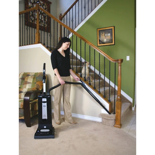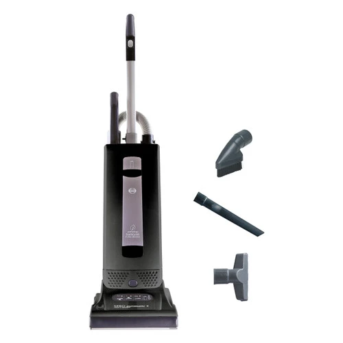 Sebo’s upright vacuums are commercial grade in cleaning power and one of the most convenient to use. While extremely powerful, the Sebo Automatic X4 is extremely quiet and light. They are perfect for homes with pets or children. Allergy sufferers rejoice over how helpful the Sebo is with getting rid of dust and pollen. Equipped with top-fill multi-layered bags and S-Class micro-filters and exhaust filters, the Sebo Automatic cleans the air as it flows through the vacuum. Electrostatically charged material in the filters attracts and traps even microscopic pieces of dirt and dust. The filters also protect the motor from dust build up or clogging. The bags are easy to change and seal shut to prevent any loss of dirt. The bags are huge, holding up to 1.4 gallons, so changes are few and far between. Sebo vacuums are made entirely of high grade materials and are built to last for years. With reinforced ABS plastic, metal and aluminum, the Automatic X4 can handle even the most abrasive of vacuum jobs. High-end motors and brush rollers designed to funnel hair and debris also help make the Automatic last for years. Sebo backs their vacuums with a five-year warranty on the motor and non-wear parts as well as a lifetime warranty on the belt. Although super durable, this vacuum is gentle on your home. Rubber wheels and furniture guards protect your bare floors and furnishings from scratches and scuffs. The nozzle of the Automatic X4 measures the floor beneath it and adjusts itself accordingly so you never have to mess with dials or pedals while vacuuming, saving you time and effort. The 12-inch wide nozzle has edge cleaners to help pick up more at once and make corners a breeze to clean. Handy indicator lights let you know when the brush is worn down and when the bag is full. The safety automatic shut off for brush obstruction saves your vacuum from unnecessary maintenance. All replaceable parts, from the brush roll to the bag, are easily removable for simple and inexpensive repairs. When your floors are clean, the convenient instant-use wand and hose can stretch up to eight feet to clean ceiling corners, behind furniture and everything in between. The crevice tool, dusting brush and upholstery nozzle included makes this vacuum an everything-cleaner. Additional tools are available for the best imaginable clean all over your home. Available in red, blue, white or onyx, the Automatic X4 will become the leader of your cleaning regime and will help cut back your time spent cleaning for years to come.